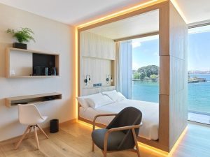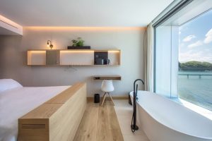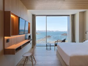 Siete tipologías distintas conforman nuestras habitaciones y suites, con distribuciones y elementos de diseño singulares. En ellas se combina la calidez de la madera con amplios ventanales que permiten capturar toda la luz natural, creando una fuerte sensación de calma desde el primer instante.
